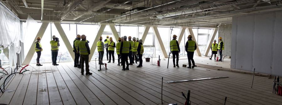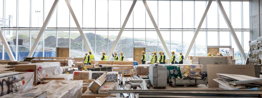 Stjórin á Landsverki, Ewald Kjølbro, vitjar sjálvandi javnan á byggiplássinum, og hann er nøgdur við gongdina á Føroya størsta byggiplássi.