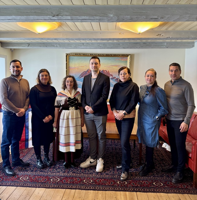 Frá vinstru: Múte Bourup Egede (fíggjarmál), Naaja H. Nathanielsen (vinnumál), Sirið Stenberg (uttanríkis- og vinnumál), Jens-Frederik Nielsen, (landsstýrisformaður), Vivian Motzfeldt (uttanríkismál), Nivi Olsen (útbúgving og mentan), Aqqaluaq B. Egede (undirstøðukervi).